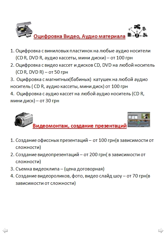 Ниже приведен подробный прейскурант наших услуг и цен на каждую из них.